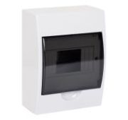 Настенный модульный щиток предназначен для монтажа в жилых и административных помещениях для установки автоматических выключателей любых производителей: таймеров, устройств защитного отключения и управления освещением и т.д. В комплект поставки входят: оцинкованная DIN-рейка и суппорт, заглушки для пустых модулей, заглушки с двойной изоляцией на пазы для крепления к стене, сборочные винты. Преперфорированные отверстия и насечки на задней стенке обеспечивают точное соединение с пластиковыми трубами и обеспечивают легкий монтаж. Специальная конструкция петель дает возможность открывать дверцу более чем на 180°. Степень пыле- и влагозащиты IP 65. Количество модулей - 4. Параметры щитка: ширина - 143 мм, высота - 210 мм, глубина - 102 мм. Материал - термостойкий пластик. Цвет - серый..